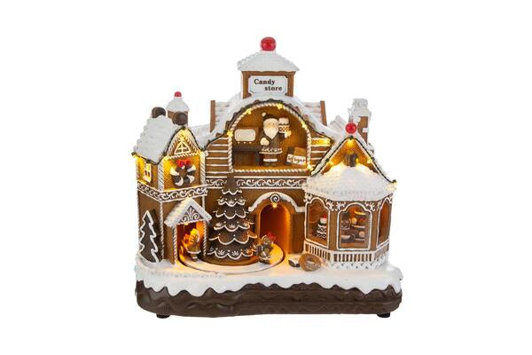 CARILLON CASETTA PAN DI ZENZERO IN RESINA CON LED ED 8 MELODIE (33x17xh.30cm)