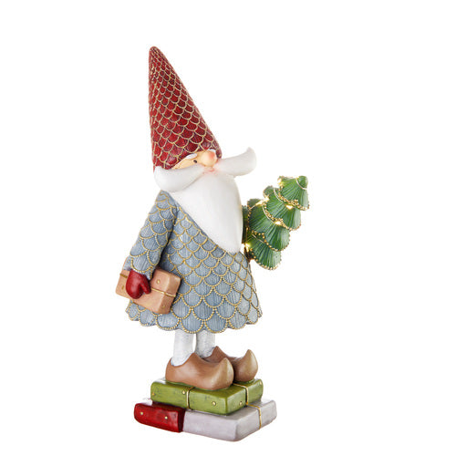 DECORAZIONE DA APPOGGIO- BABBO NATALE IN PIEDI CON BASE PACCHI REGALO CON ALBERO LED (15x17xh.35cm)