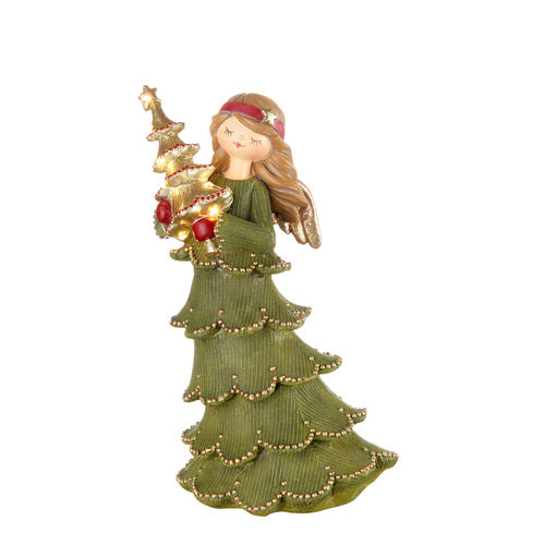 ANGELO IN RESINA VERDE CON ALBERO DI NATALE LED (15x11,5xh.24cm)